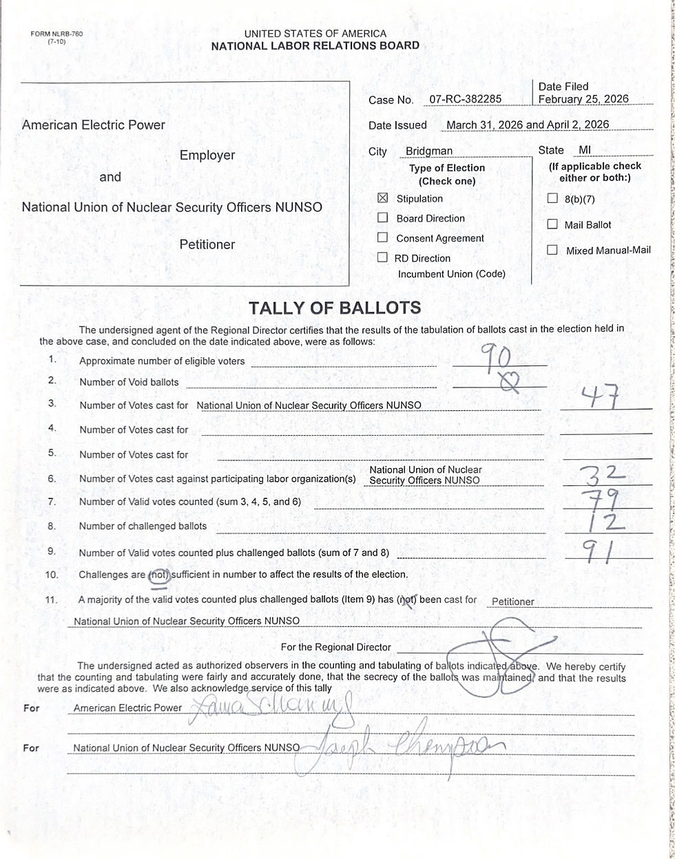 DC Cook Nuclear Security Officers in Michigan VOTE to Join our Nuclear Security Union, National Union of Nuclear Security Officers NUNSO